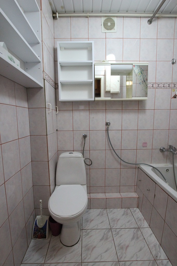 Okna PCV, łazienka wykończona glazurą i terakotą.