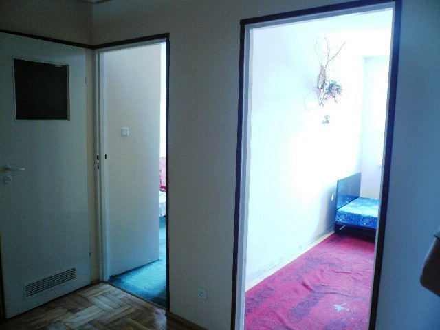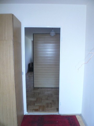 3 pokoje o pow. 57m2. Duży pokój o pow. 38 m2 z którego jest bezpośrednie wejście do dwóch pokoi o pow. ok. 9 i 10 m2 oraz ustawnej kuchni. Łazienka z wanną i WC, częściowo wykończona w glazurze i terakocie.W całym mieszkaniu położona jest gładź. W salonie parkiet po cyklinowaniu. Okna drewniane starszego typu. Wymieniona instalacja elektryczna. Do mieszkania przynależy miejsce parkingowe przy bloku.