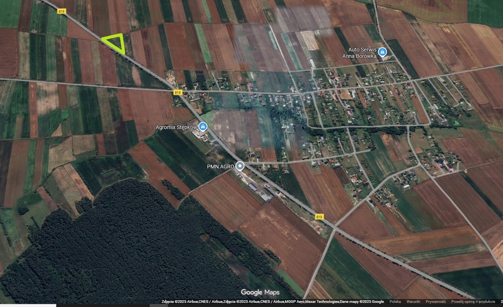 Najbliższa zabudowa znajduje się w odległości 400 metrów od działki.