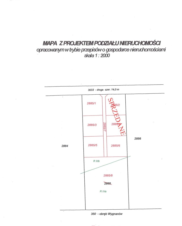 Wszystkie działki o powierzchni 1072m2/ 1074m2, szerokość około 32 m, długość około 33 m.