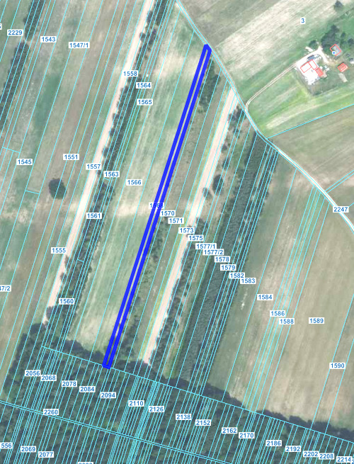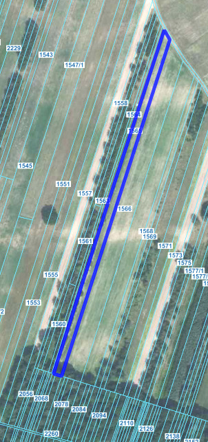 Działka o powierzchni 3981m2, szerokość około 10m, długość około 400m
