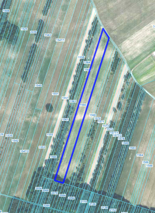 Działka o powierzchni 2192m2, szerokość około 6m, długość około 370 m