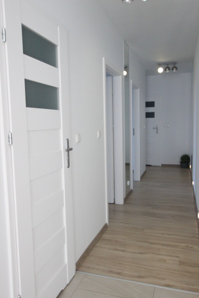 W mieszkaniu znajduje się salon z aneksem kuchennym, 3 pokoje, łazienka z wanną i toaletą, osobna toaleta oraz przedpokój.