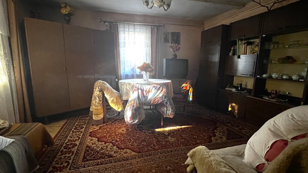 Ganek, kuchnia i dwa pokoje, łączna powierzchnia użytkowa wynosi 59 m2.
