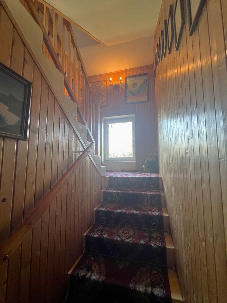 Media: prąd + siła, woda z sieci miejskiej, szambo, piec C.O. na paliwa stałe.