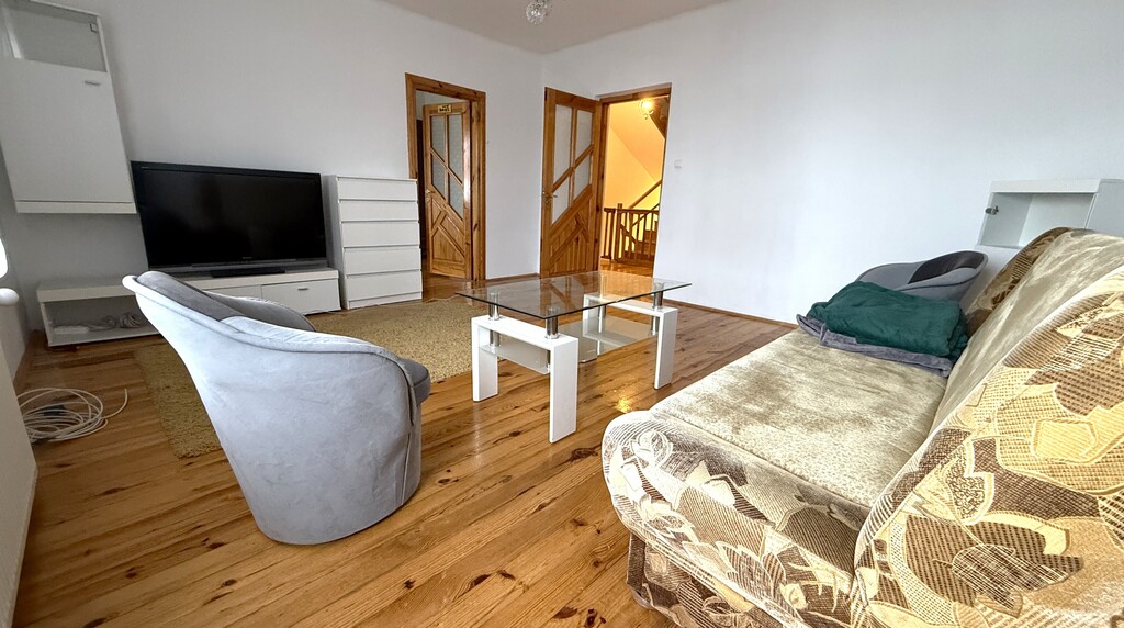 - na poziomie I-szego piętra: obszerny salon z wyjściem na balkon, pokoje, łazienka, kuchnia,
