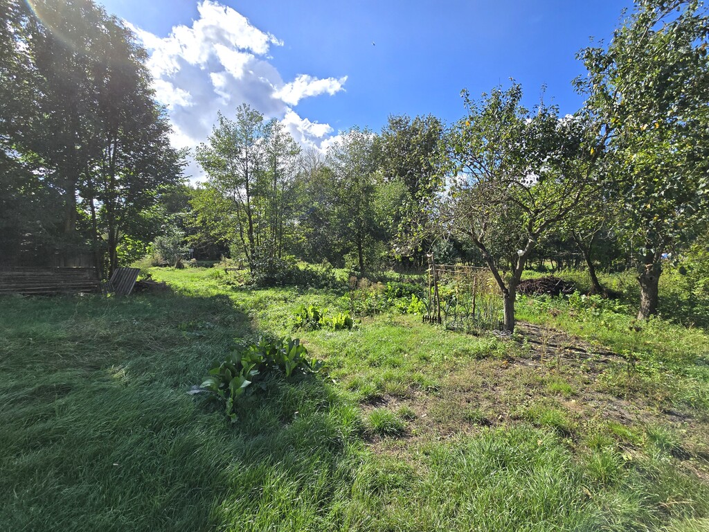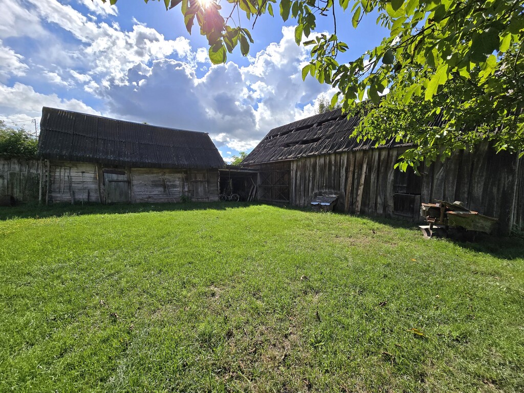 Szerokość działki około 17 m2, na działce drewniane budynki gospodarcze.