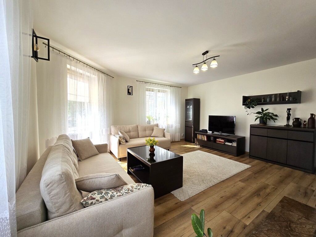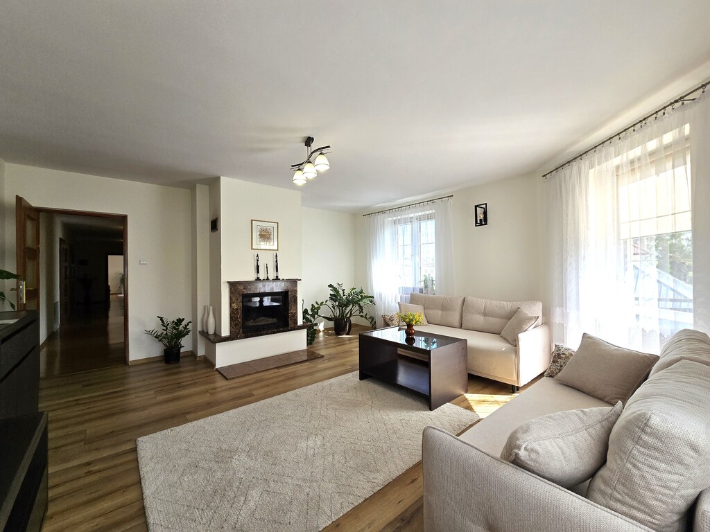 W kuchni i w łazience ogrzewanie podłogowe. W salonie kominek.
