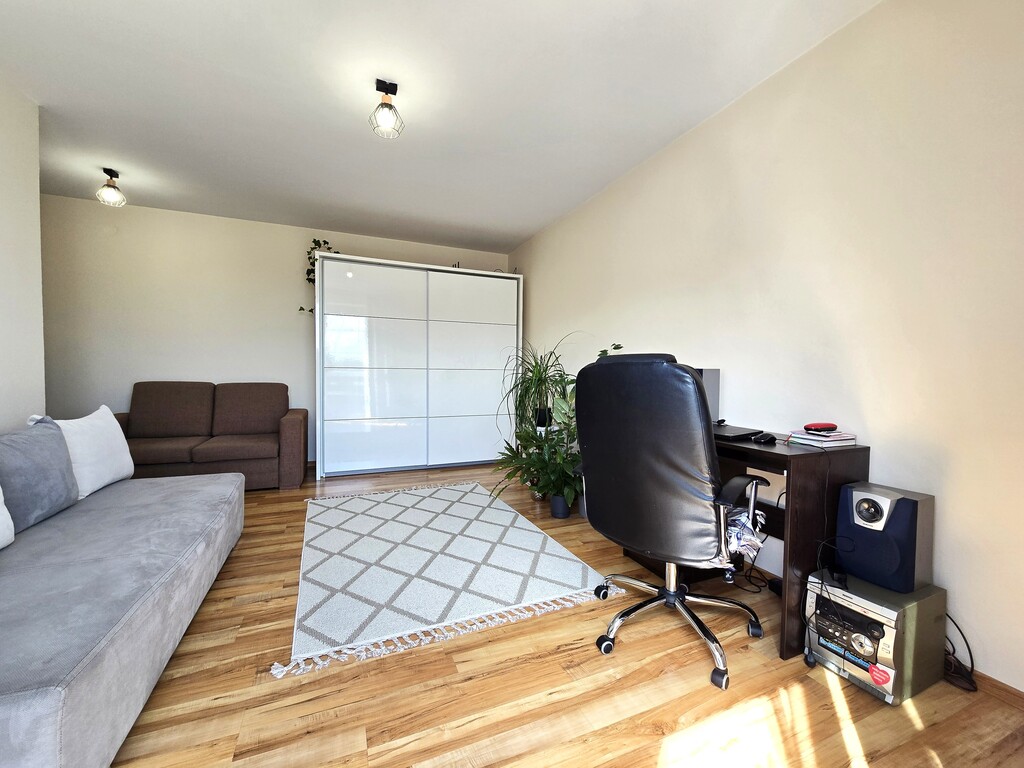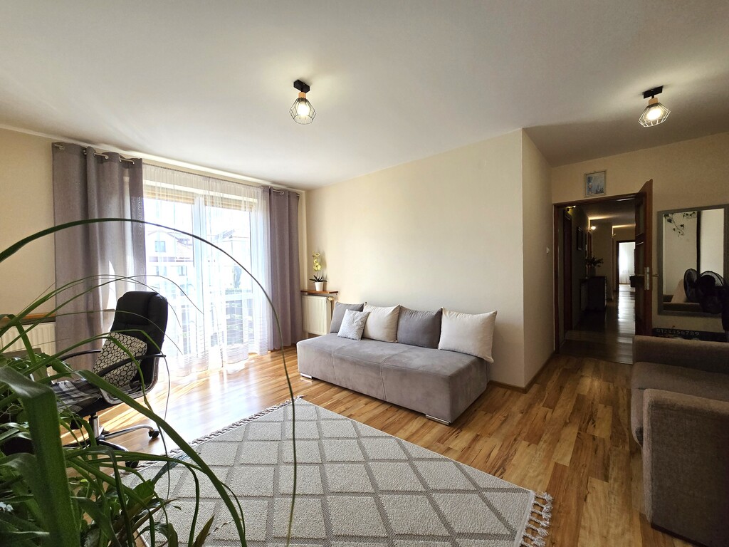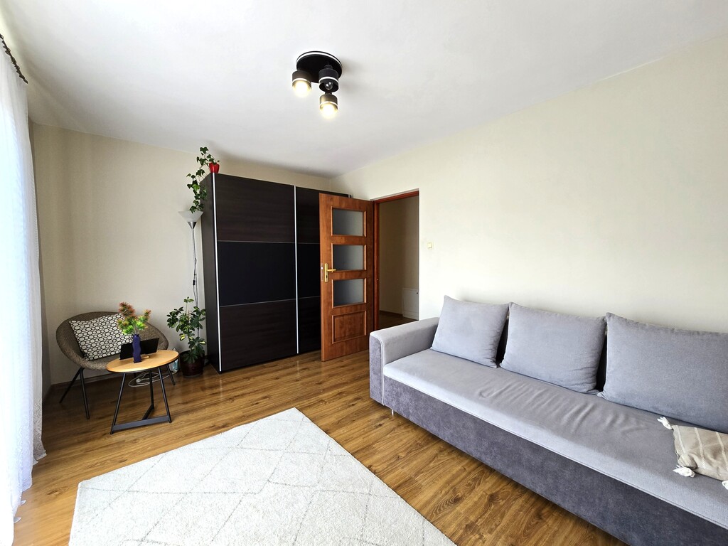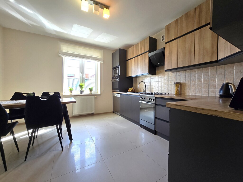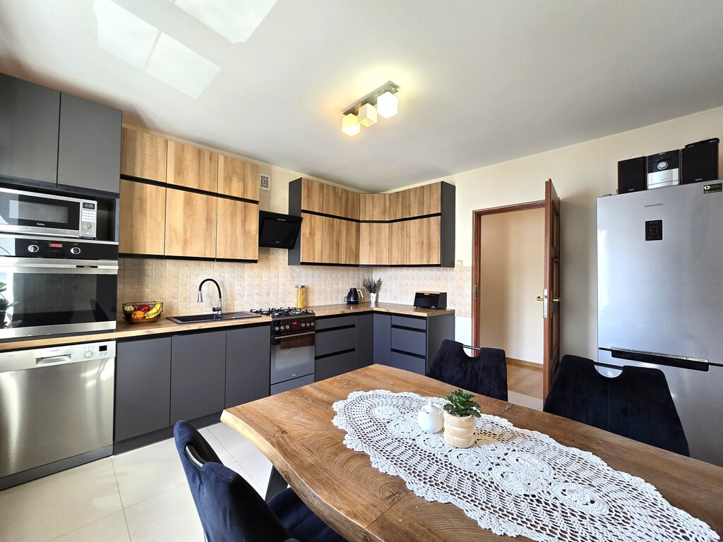 W cenie pozostaje zabudowa kuchni, szafa wnękowa, szafy w pokojach (reszta umeblowania do uzgodnienia).