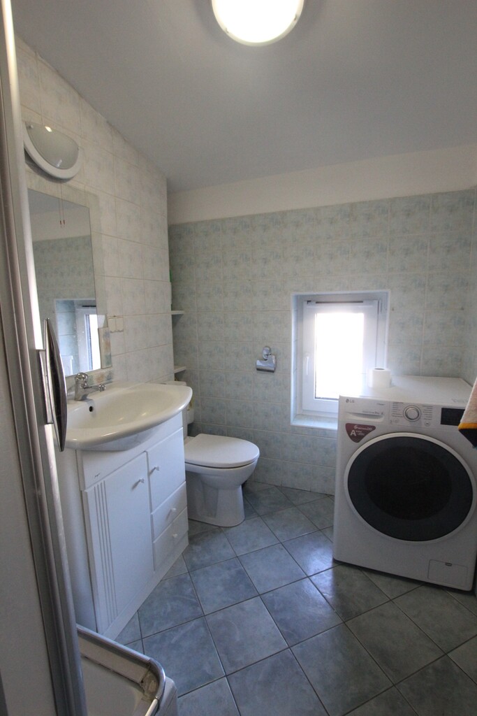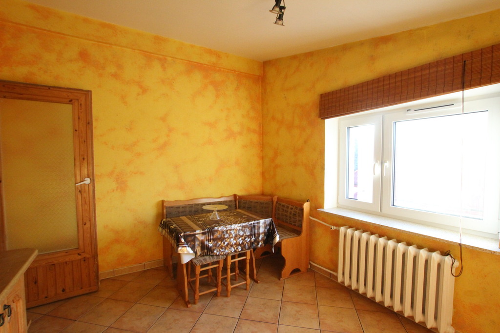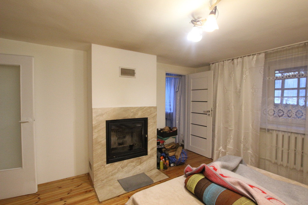 I kondygnacja-pokój z kominkiem który ma rozprowadzenie cieplne na cały dom, oddzielna kuchnia, łazienka z kabiną prysznicową i WC, dodatkowym pomieszczeniem jest letnia kuchnia z nowym piecem kaflowym, lodówką, zmywarką oraz spiżarnia, suszarnia i kotłownia.