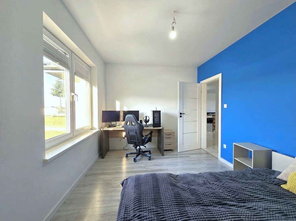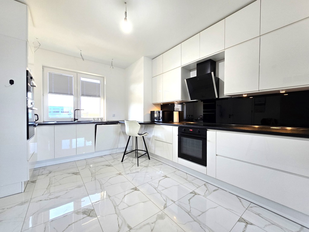 Dom z 2021 roku, gotowy do zamieszkania, kompletnie umeblowany wraz z kuchnią w zabudowie wyposażoną w wysokiej jakości sprzęt AGD.