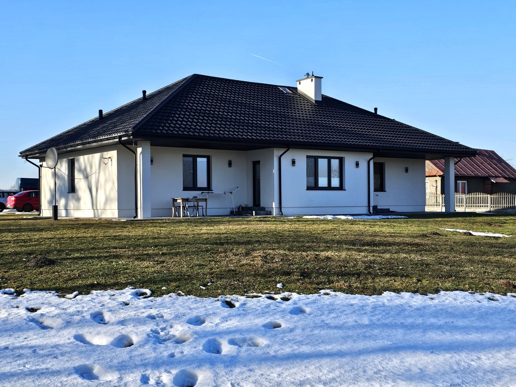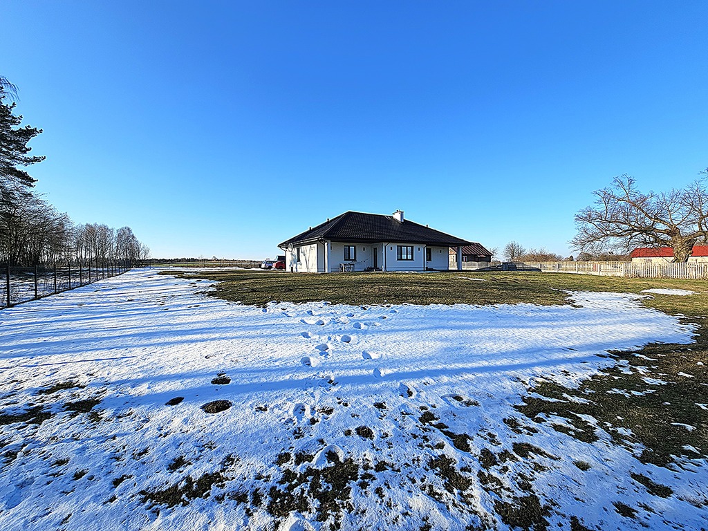 Dom wolnostojący, parterowy, niepodpiwniczony, pow. zabudowy 175,8 pow. użytkowej 155,60 m2. Istnieje możliwość zaadaptowania poddasza - dodatkowe ponad 90 m2 powierzchni mieszkalnej. Położony na działce o powierzchni 2948 m2.