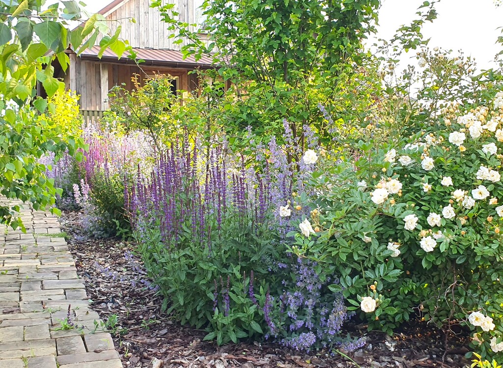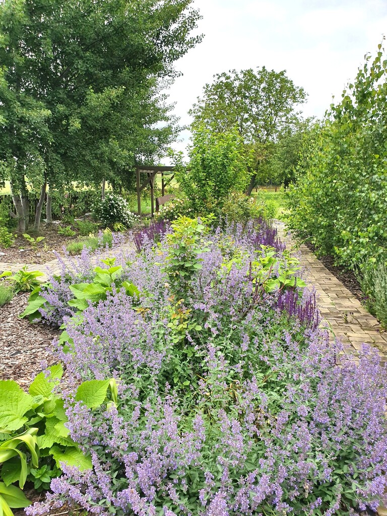 Ogród: z rozprowadzeniem wody, z bogatymi, młodymi nasadzeniami, zadbany, ze ścieżkami wykonanymi ze starej brukowej klinkierowej cegły.