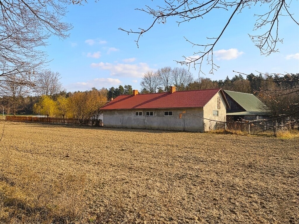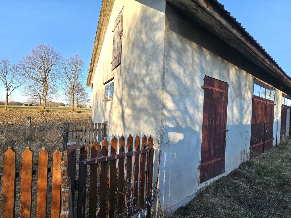 Na działce znajduje się również drewniana stodoła z wiatą na samochód oraz zadaszonym pomieszczeniem, które można przeznaczyć na magazyn oraz murowany budynek gospodarczy, w którym znajduje się: