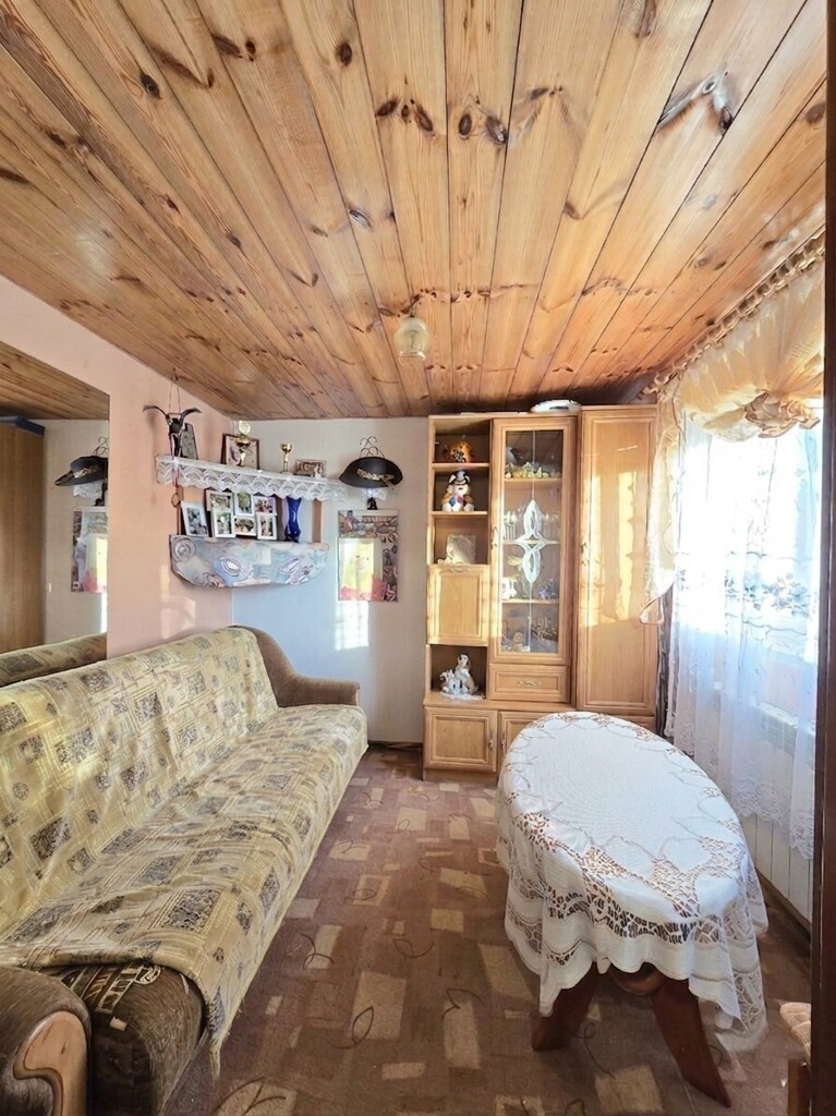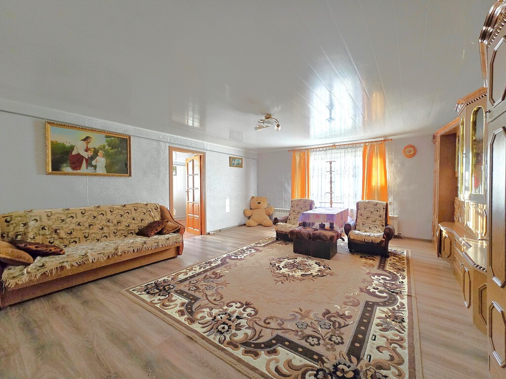 Dom drewniany, parterowy o powierzchni zabudowy około 90 m2.