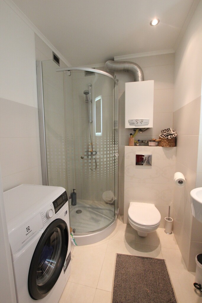 Ogrzewanie gazowe, woda i kanalizacja z sieci miejskiej, okna PCV, instalacja alarmowa.