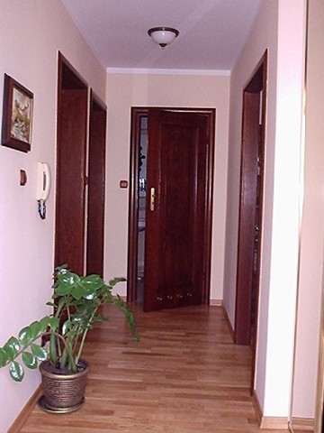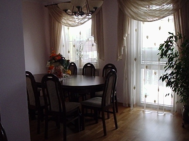 Dom w zabudowie bliźniaczej, 4-kondygnacyjny, przeznaczony dla dwóch a nawet trzech rodzin - oddzielne wejście do każdego z 3 mieszkań. Dom jest częściowo po remoncie, a częściowo dopiero 2 lata temu był wykańczany (wymieniony dach, docieplony, nowa elewacja z tynku silikatowego, nowe ogrodzenie kostka brukowa wokół domu). Stan techniczny bardzo dobry. W przyziemiu o pow. 72m2 znajdują się 2 pokoje, garaż, łazienka, kotłownia (w chwili obecnej wynajmowane jako samodzielne mieszkanie); na wysokim są 3 pomieszczenia (jedno z nich może być wykorzystane na kuchnię są wszystkie przyłącza) i łazienka z kabiną. Dwie ostatnie kondygnacje tworzą 2-poziomowe mieszkanie o pow. całkowitej ok 150 m2 z osobnym wejściem z zewnątrz obejmujące 4 pokoje, kuchnię i łazienkę. Mieszkanie zostało komfortowo wykończone, na podłodze w pokojach i przedpokojach deska barlinecka, parkiet, w kuchni i łazience wysokiej klasy terakota i glazura. W kuchni nowa robiona pod wymiar dębowa zabudowa (w cenie domu).