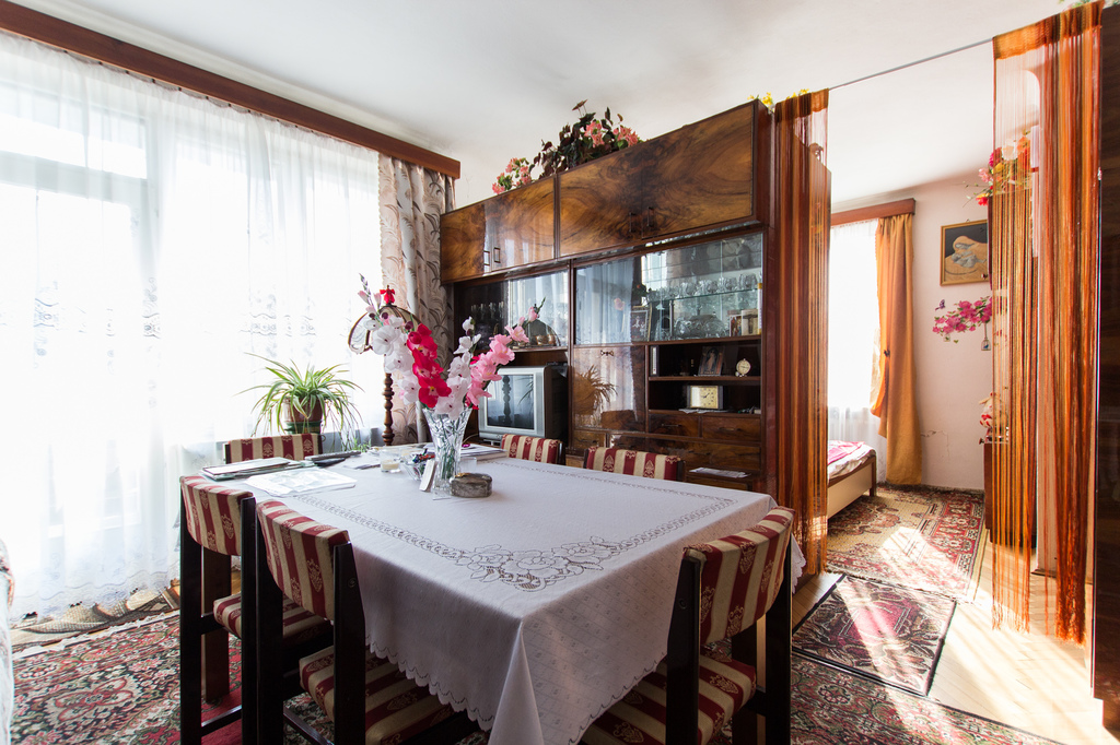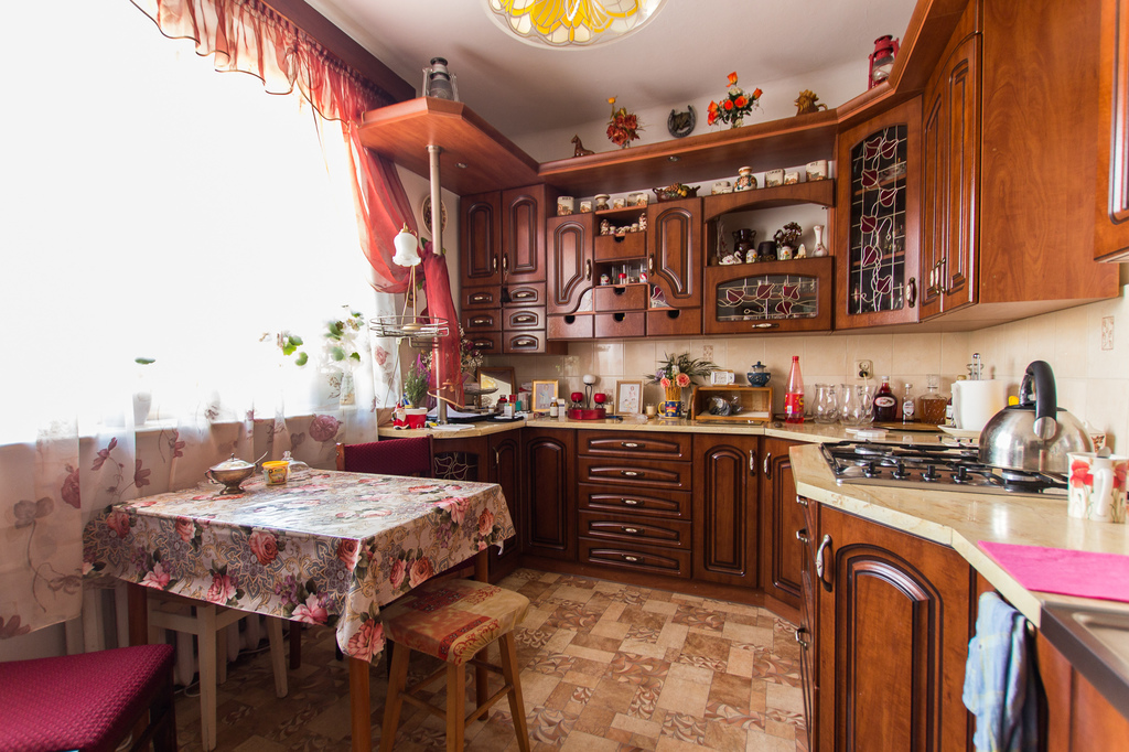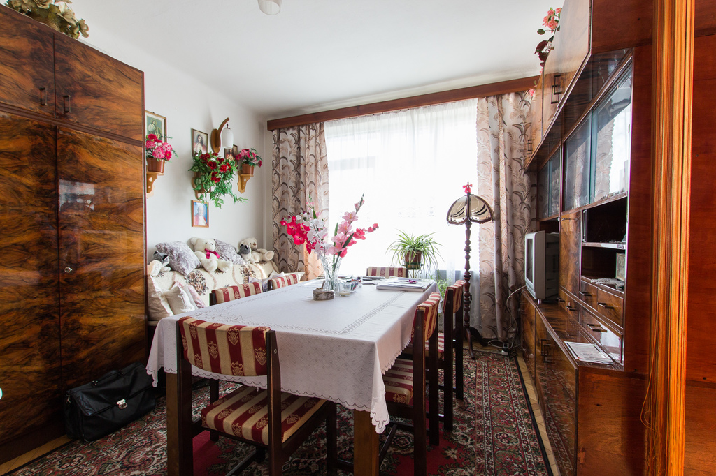 Na podłogach w pokojach parkiet, częściowo wykładzina PCV, w łazienkach glazura i terakota. Meble kuchenne zabudowane.