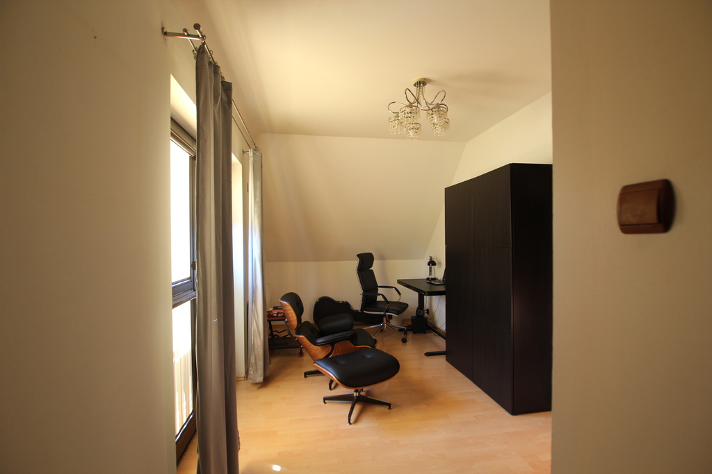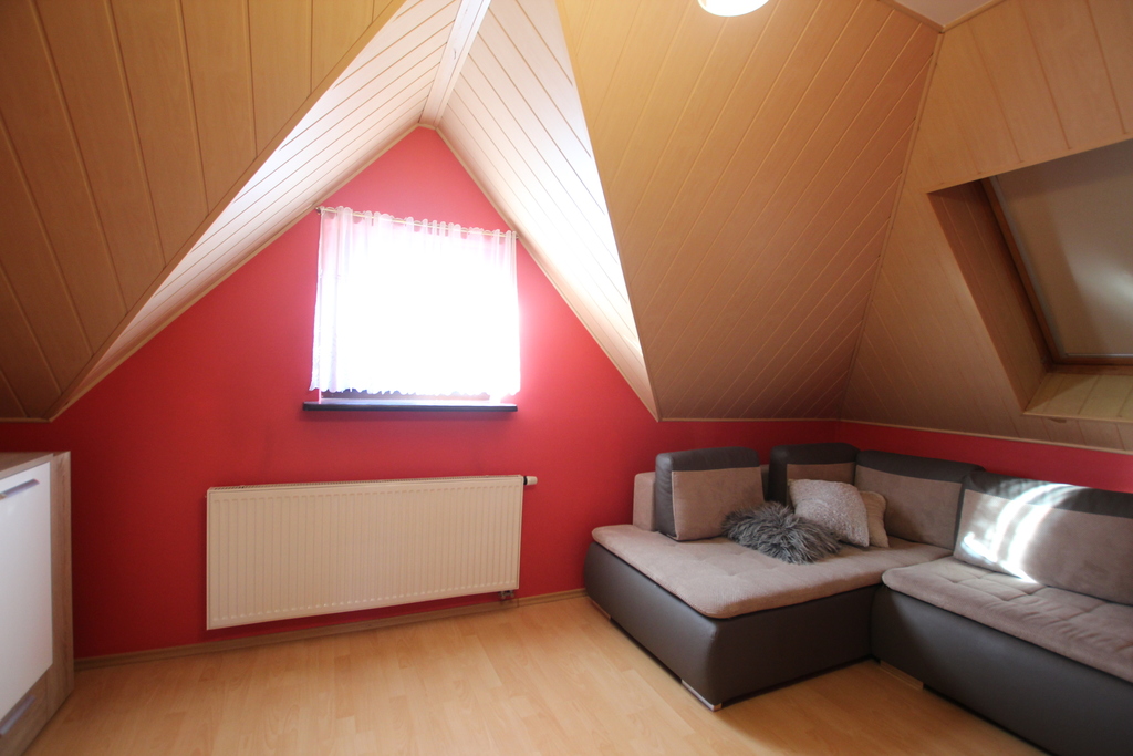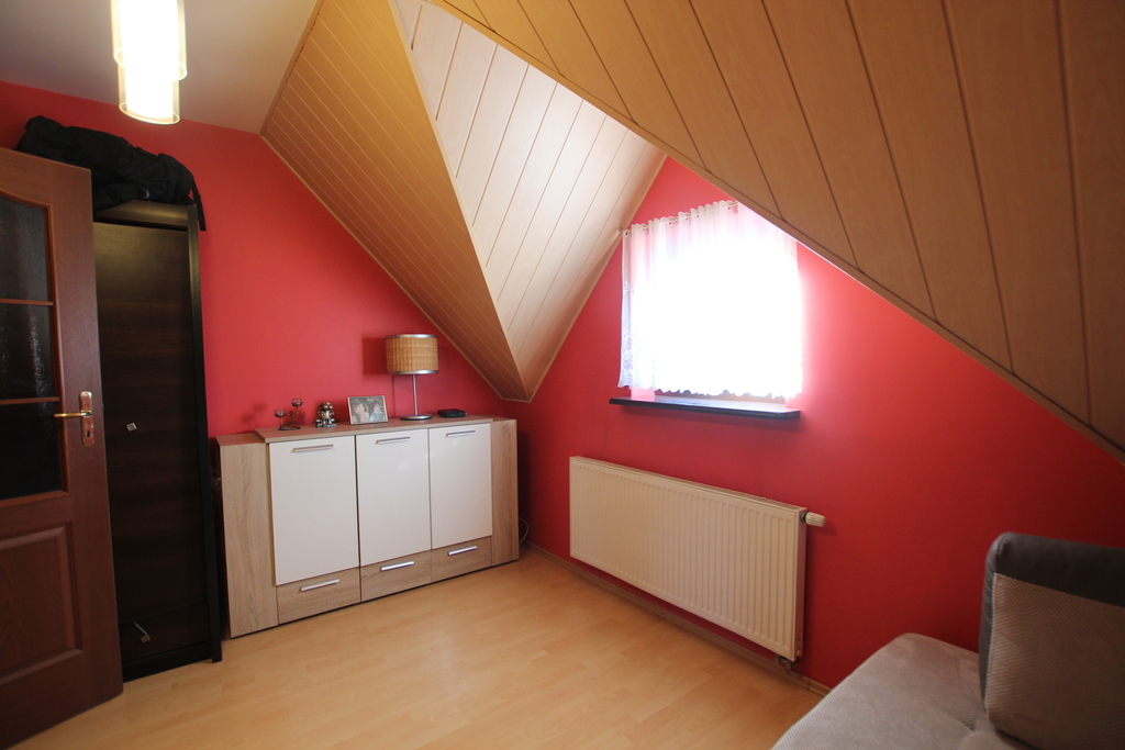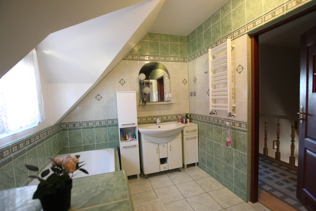 Na poddaszu znajdują się 3 przestronne i widne sypialnie oraz łazienka z wanną i kabiną prysznicową oraz toaletą.