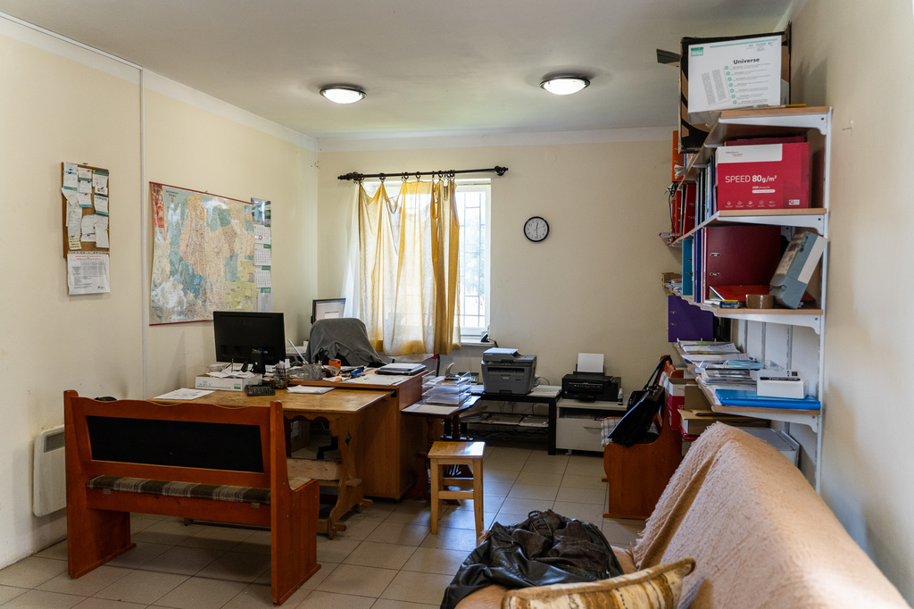 5. budynek socjalno-biurowy z 1989r. o powierzchni użytkowej 142,17m2. Budynek murowany wolnostojacy, bez podpiwniczenia, parterowy z poddaszem użytkowym, dach dwuspadowy; remontowany w 2001r. Składa się z pomieszczeń biurowych, łazienki i wc, kotłowni, pomieszczeń pomocniczych oraz komunikacyjnych(korytarze, schody). Istnieje możliwość dowolnej aranżacji poddasza. Budynek posiada instalacje: elektryczną, wodną, kanalizacyjną. Ogrzewanie elektryczne punktowe.