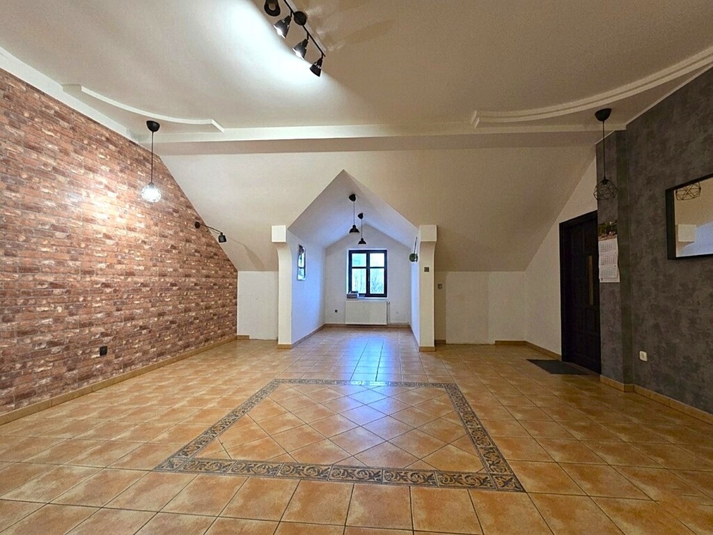 Obecnie parter budynku jest wynajęty na pomieszczenia handlowe, natomiast poddasze na usługi.